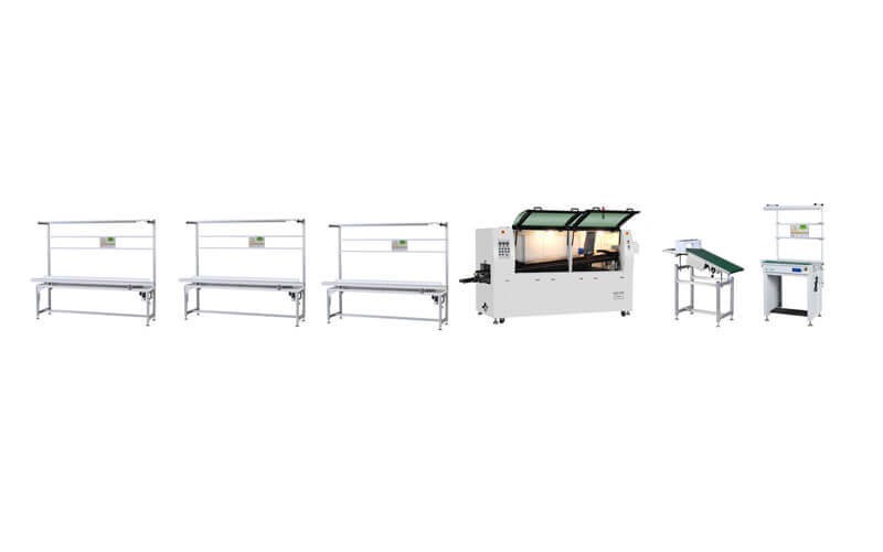 Product description: Middle Output DIP production line, with middle output Wave Soldering Machine,2 insert line