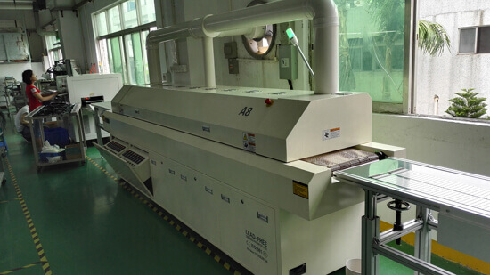 peak wave length of the radiation power is 4UM with curved surface reflector increasing temperature ramp up speed, improve the thermal efficiency. The special forced-air circulation system make PCB and the component heated uniform and eliminate the "shadow effect" completely.